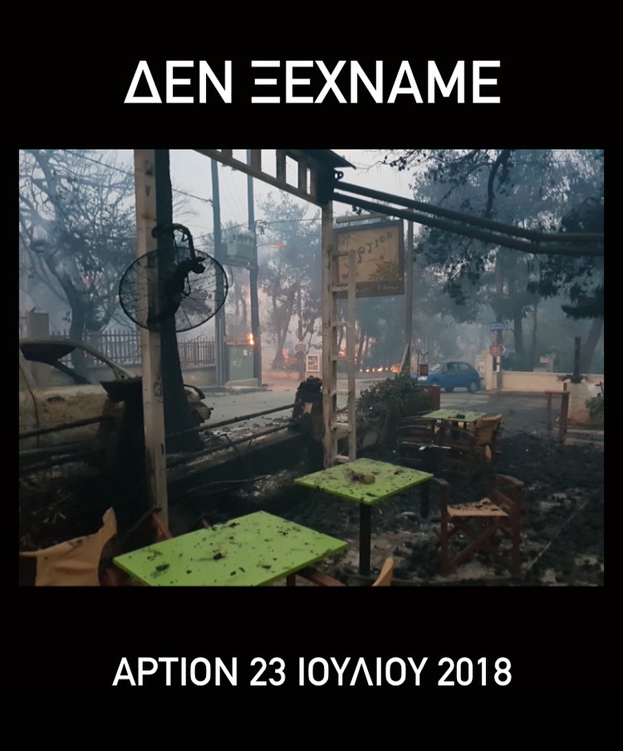 Μια συγκλονιστική φωτογραφία από τη φονική πυρκαγιά της 23ης Ιουλίου 2018 στο Μάτι, δημοσίευσε το ”Αρτιον” γεμίζοντας καρδιές με θλίψη, αλλά και με δέος. Το κατάστημα «Άρτιον», αποκαΐδια μέσα στο πύρινο χάος, στέκει μισογκρεμισμένο, με τις φλόγες ακόμη να φαίνονται στην φωτογραφία και να κατατρώγουν ό,τι απέμεινε από το Μάτι, παίροντας μαζί τους 104+συνανθρώπους μας. Μια εικόνα-γροθιά στο στομάχι, μα και ένα σύμβολο αντοχής και ελπίδας.