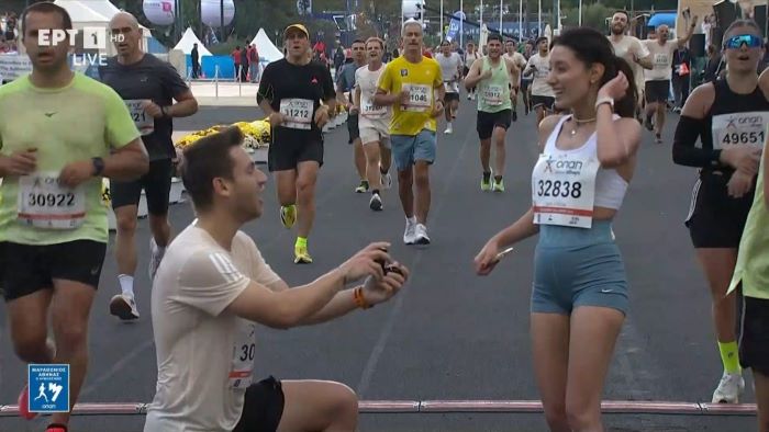 Η στιγμή καταγράφηκε από τις κάμερες και ήδη κάνει τον γύρο του διαδικτύου, προσθέτοντας μια ρομαντική πινελιά στη φετινή διοργάνωση. Για άλλη μια φορά, ο Μαραθώνιος απέδειξε ότι πέρα από ιδρώτα και επιδόσεις, κρύβει ιστορίες καρδιάς, ανθρώπινης θέλησης και αγάπης.