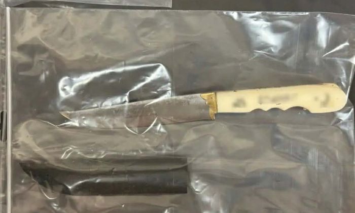 Ιδιαίτερη εντύπωση προκαλεί το γεγονός ότι πρόκειται για κρητικό μαχαίρι, στη λεπίδα του οποίου ήταν χαραγμένη μαντινάδα: