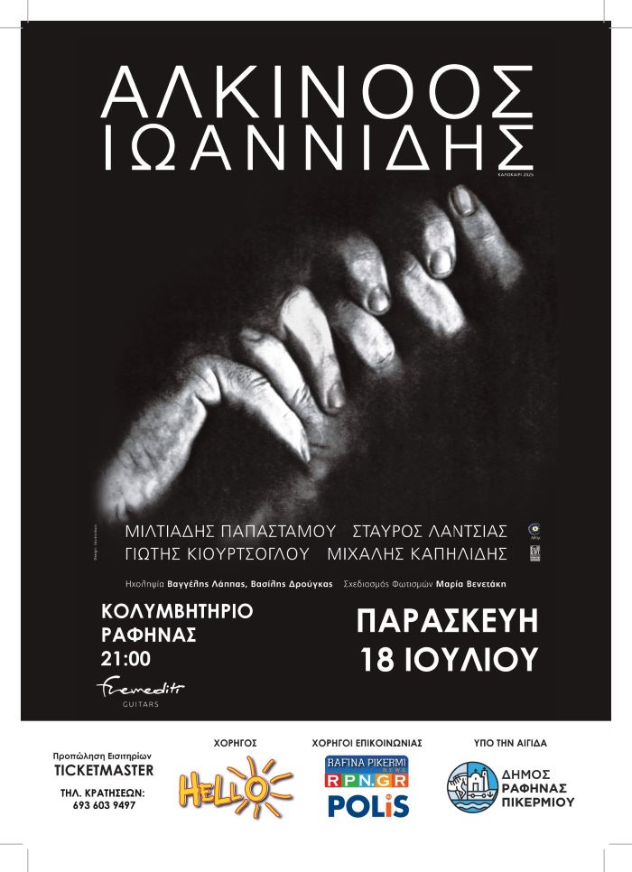 Προπώληση: https://www.ticketmaster.gr/alkinoos-iwannidhs-kolymbhthrio-rafhnas_sen_2007173.html