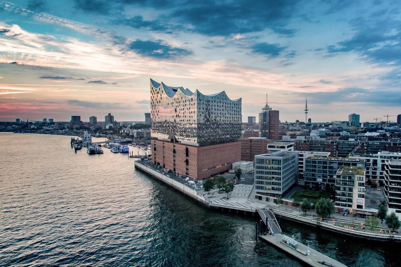 - Elbphilharmonie (Έλμπφιλαρμονί): Η εντυπωσιακή αίθουσα συναυλιών, με την κυματιστή γυάλινη κατασκευή της, που μοιάζει να αναδύεται από μια παλιά αποθήκη. Η πλατφόρμα δημόσιας θέασης Plaza προσφέρει εκπληκτική πανοραμική θέα στο λιμάνι και την πόλη.
