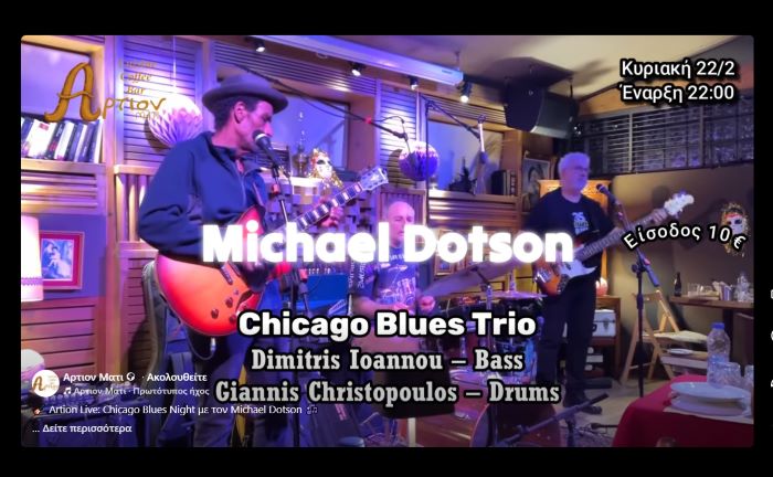 Το Artion στο Μάτι υποδέχεται έναν αυθεντικό εκπρόσωπο του Chicago Blues, τον εκρηκτικό Michael Dotson, για μια βραδιά γεμάτη ρυθμό, ένταση και αυθεντικό blues ήχο.