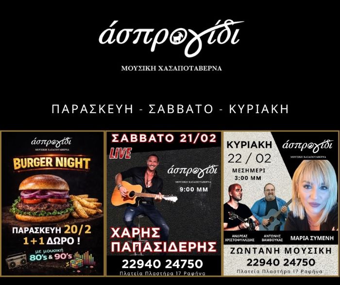 Ένα γεμάτο μουσικό τριήμερο ετοιμάζει το Άσπρο Γίδι, καλώντας το κοινό σε βραδιές με ζωντανή μουσική, καλό φαγητό και αυθεντική διασκέδαση στην κεντρική πλατεία της Ραφήνας.