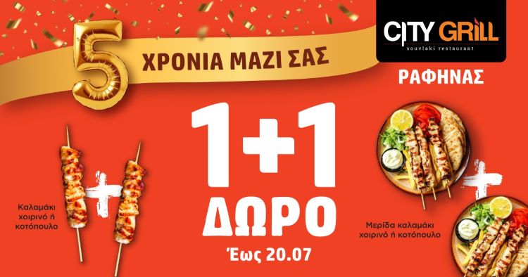 Το CITY GRILL στη Ραφήνα σβήνει 5 κεράκια και λέει ένα μεγάλο ΕΥΧΑΡΙΣΤΩ σε όλους εσάς που μας στηρίξατε όλα αυτά τα χρόνια!