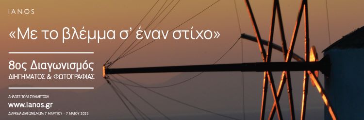 Ο IANOS, για όγδοη συνεχή χρονιά, διοργανώνει Διαγωνισμό Διηγήματος και Φωτογραφίας με θέμα, αυτή τη φορά, το «Με το βλέμμα σ’ έναν στίχο».