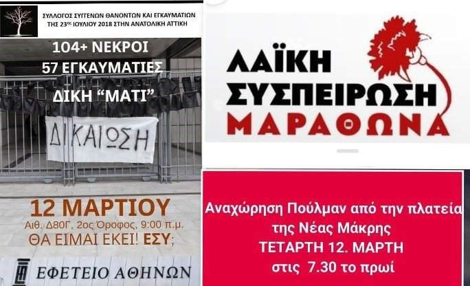 Το Εργατικό Κέντρο Λαυρίου και Ανατολικής Αττικής, απευθύνει κάλεσμα στα Σωματεία και στους εργαζόμενους της Ανατολικής Αττικής να συμμετέχουν μαζικά την Τετάρτη 12 Μαρτίου 2025 στη συγκέντρωση που καλεί ο “Σύλλογος Συγγενών Θανόντων & Εγκαυματιών της 23/07/2018”, στην αίθουσα Δ80Γ, 2ος όροφος, Κτίριο Εφετείου, οδός Λουκάρεως, στις 9:00πμ, που εκδικάζεται η δίκη για την τραγική πυρκαγιά στο Μάτι τον Ιούλιο του 2018 και η εισαγγελέας θα αποφανθεί για την καταδίκη ή όχι όσων ευθύνονται για τον θάνατο 104 συνανθρώπων μας.