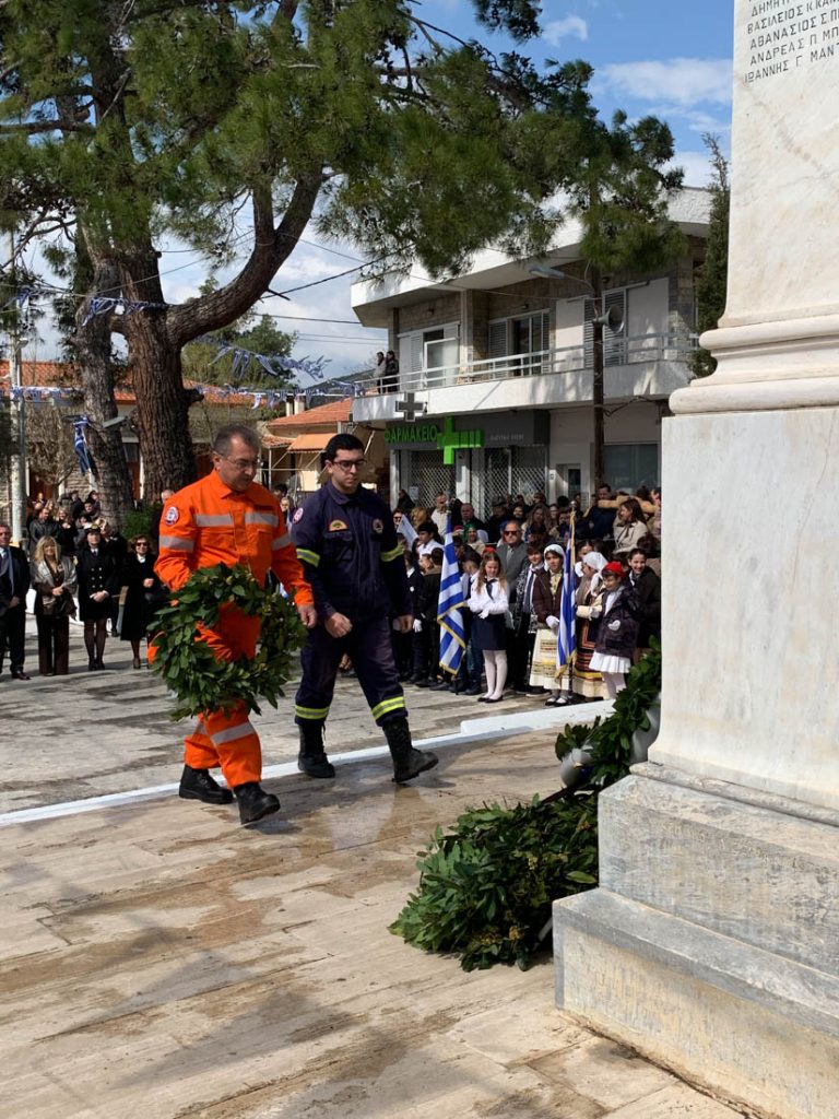 Τη δοξολογία στους Ιερούς Ναούς και την εκφώνηση των πανηγυρικών λόγων, ακολούθησε η επιμνημόσυνη δέηση και η κατάθεση στεφάνων στα Μνημεία Ηρώων των δημοτικών μας ενοτήτων, καθώς και τήρηση ενός λεπτού σιγής.