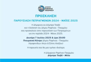Δήμος Ραφήνας Πικερμίου: Πρόσκληση σε παρουσίαση ετήσιων πεπραγμένων