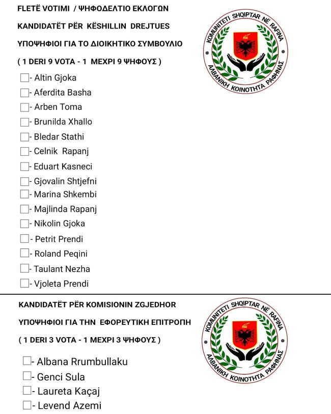 Η ψήφος σας είναι σημαντική, η συμμετοχή σας δίνει πνεύμα, ζωή και δύναμη για να συνεχίσουμε αυτό το αξιοπρεπές έργο της <<ΑΛΒΑΝΙΚΗΣ ΚΟΙΝΟΤΗΤΑΣ ΡΑΦΉΝΑΣ>>