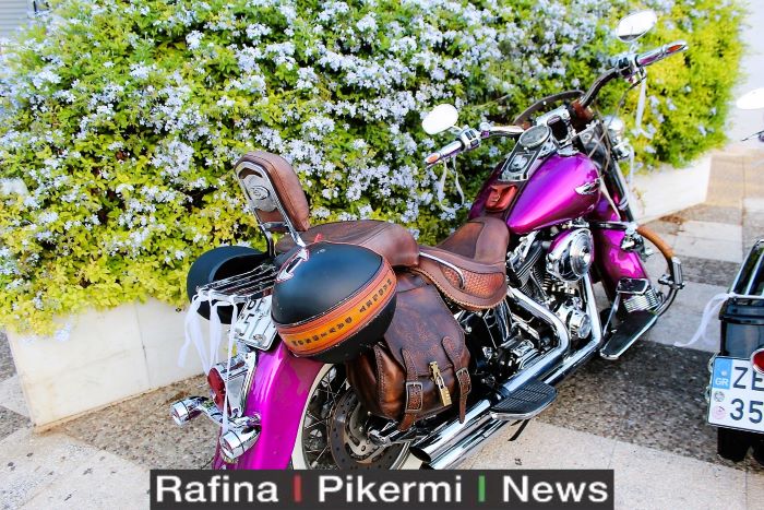 Και ξαφνικά η Ραφήνα γέμισε κούκλες… Kονβόι από τους φίλους και τις φίλες του γαμπρού, του Κώστα Μαρκέτου (Ιγκουάνα) που τον συνόδευσαν στην εκκλησία με πανέμορφες Harley Davidson. Μέλη του Harley Davidson Club βλέπετε, και έκαναν αισθητή την παρουσία τους αλλά και την πατροπαράδοτη καζούρα στο γαμπρό. Μάλιστα τον έβαλαν να φωνάξει 3 φορές Κική σ’αγαπώ για να τον ντύσουν μετά και να τον ετοιμάσουν (Κική λέγεται η ευτυχής νύφη). Ακολουθεί και βίντεο για τους άπιστους Θωμάδες.