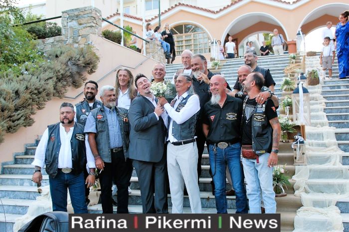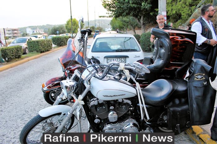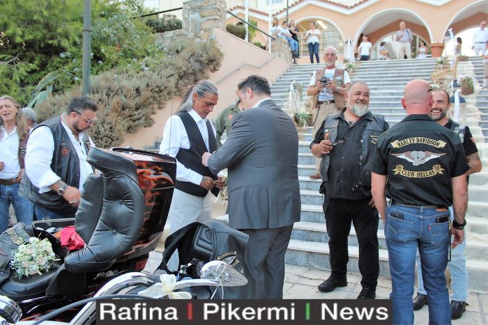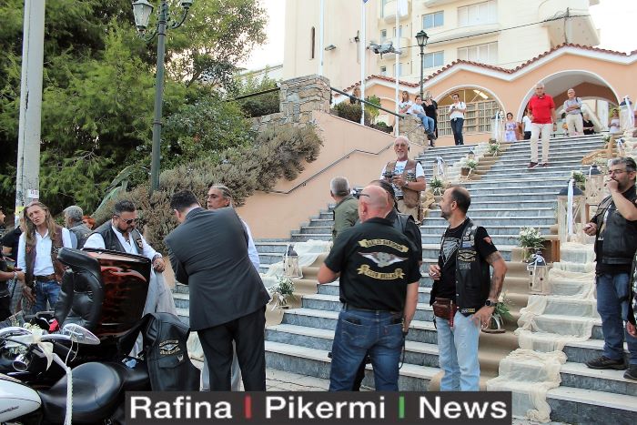 Και ξαφνικά η Ραφήνα γέμισε κούκλες… Kονβόι από τους φίλους και τις φίλες του γαμπρού, του Κώστα Μαρκέτου (Ιγκουάνα) που τον συνόδευσαν στην εκκλησία με πανέμορφες Harley Davidson. Μέλη του Harley Davidson Club βλέπετε, και έκαναν αισθητή την παρουσία τους αλλά και την πατροπαράδοτη καζούρα στο γαμπρό. Μάλιστα τον έβαλαν να φωνάξει 3 φορές Κική σ’αγαπώ για να τον ντύσουν μετά και να τον ετοιμάσουν (Κική λέγεται η ευτυχής νύφη). Ακολουθεί και βίντεο για τους άπιστους Θωμάδες.