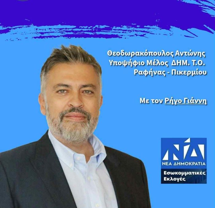 Ο Αντώνης Θεοδωρακόπουλος κατεβαίνει υποψήφιο μέλος της ΔΗΜΤΟ Ραφήνας Πικερμίου  με υποψήφιο Πρόεδρο τον Γιάννη Ρήγο.