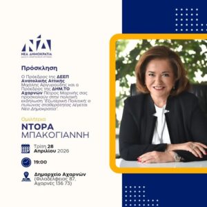 Ευχαριστίες της Ντόρας Μπακογιάννη για την εκδήλωση στη ΔημΤΟ Ν.Δ. Αχαρνών – Θρακομακεδόνων