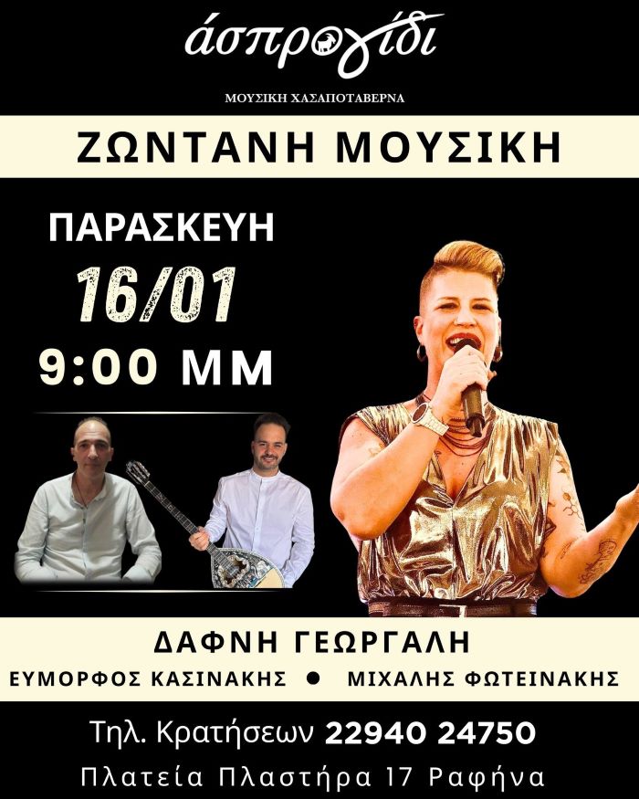 Την Παρασκευή 16/01, το Σάββατο 17/01 και την Κυριακή 19/01, το Άσπρο Γίδι σας περιμένει στην καρδιά της Ραφήνας για τρεις ημέρες γεμάτες γεύση και ζωντανή ατμόσφαιρα.
