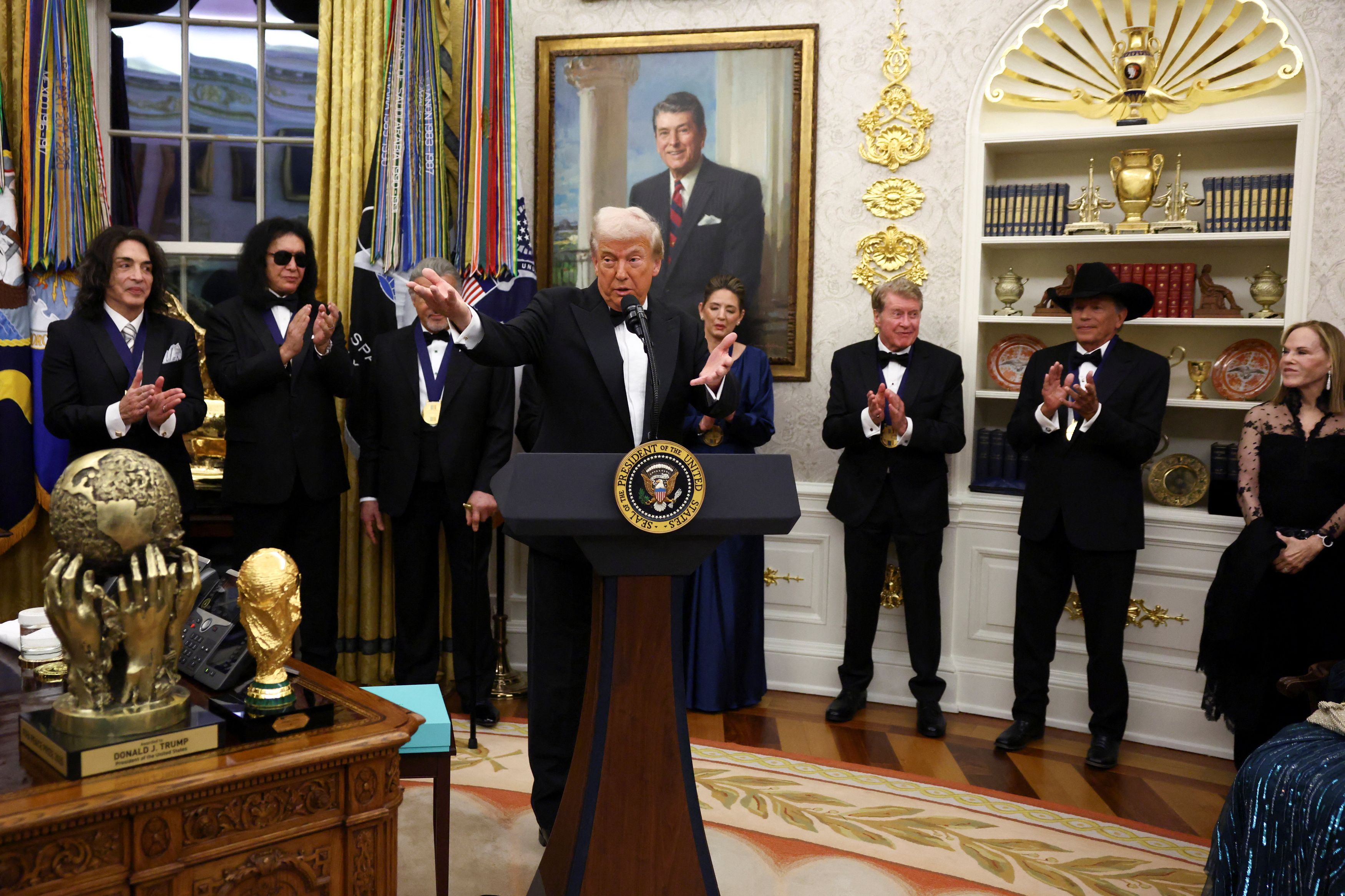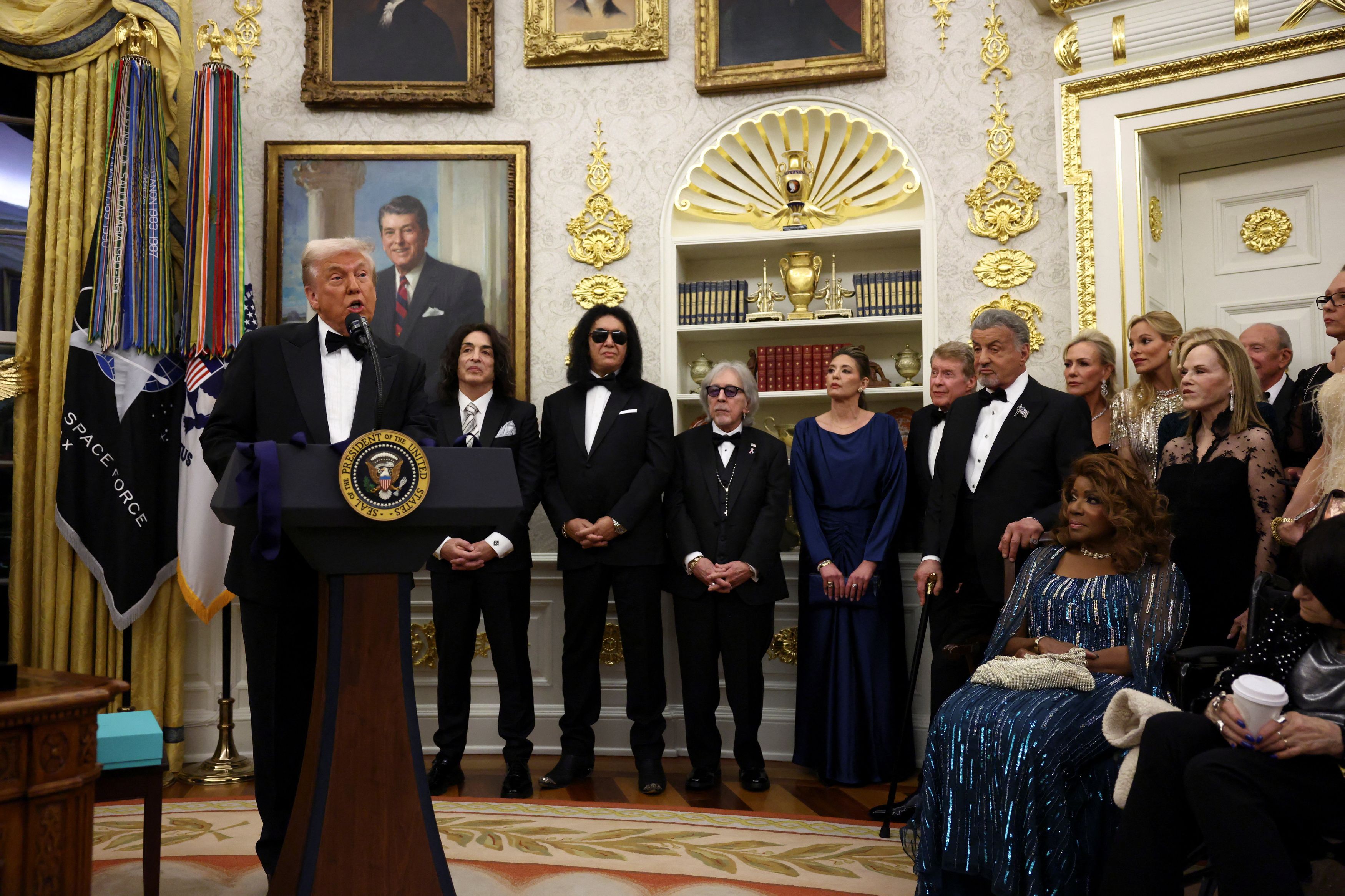 Σε μια τελετή που στόχευε να αναδείξει τη λάμψη των αμερικανικών παραστατικών τεχνών, ο πρόεδρος των ΗΠΑ Ντόναλντ Τραμπ παρουσίασε τους φετινούς τιμώμενους των Kennedy Center Honors με δηλώσεις που ξεχείλιζαν από επαίνους: «Μια ομάδα θρύλων που έχουν εμπνεύσει εκατομμύρια Αμερικανούς» και «ίσως την πιο διακεκριμένη τάξη τιμώμενων στην ιστορία του θεσμού». Ανάμεσά τους, η Γκλόρια Γκέινορ, οι Kiss, ο Σιλβέστερ Σταλόνε, ο Μάικλ Κρόφορντ και ο Τζορτζ Στρέιτ.