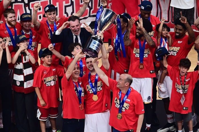 Η κορυφαία στιγμή της βραδιάς ήρθε με την απονομή του τροπαίου, όταν οι αδερφοί Αγγελόπουλοι, ο Παναγιώτης και ο Γιώργος, ανέβηκαν στο κέντρο της σκηνής και έβαλαν στη μέση τον αρχηγό της ομάδας, Κώστα Παπανικολάου. Όλοι μαζί, με περηφάνια, σήκωσαν το τρόπαιο στον ουρανό του ΣΕΦ, σε μια εικόνα που θα μείνει χαραγμένη στις καρδιές των φιλάθλων.