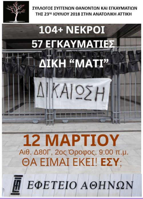 Με αυτά δεδομένα, καλούμε όλους τους φίλους, τους πληγέντες, τους συμπολίτες με ενσυναίσθηση και συνείδηση, να δηλώσουν το “παρών” στην δίκη.