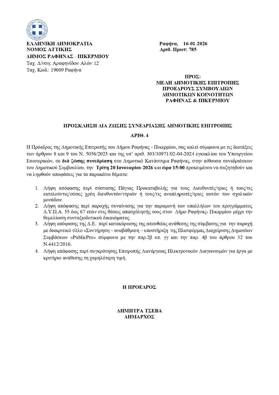 ΔΗΜΟΤΙΚΗ ΕΠΙΤΡΟΠΗ ΡΑΦΗΝΑ - ΠΙΚΕΡΜΙΤΟΠΙΚΑ ΝΕΑΤΟΠΙΚΗ ΚΟΙΝΩΝΙΑ Λιγότερο από 1 λεπταΑνάγνωση Η Δημοτική Επιτροπή Ραφήνας Πικερμίου συνεδριάζει την Τρίτη 20 Ιανουαρίου για 4 θέματα – rpn 16 Ιανουαρίου, 2026 FacebookTwitterPinterestWhatsApp Η Δημοτική Επιτροπή Ραφήνας Πικερμίου συνεδριάζει την Τρίτη 20 Ιανουαρίου TagsΔημοτική Επιτροπή Ραφήνας Πικερμίου Αυτή την εβδομάδα ΕΚΔΗΛΩΣΕΙΣ Τα ΚΑΠΗ Ραφήνας Πικερμίου κόβουν την βασιλόπιτα – rpn 16 Ιανουαρίου, 2026 0 Η Δήμαρχος, Δήμητρα Τσεβά και η Αντιδήμαρχος Κοινωνικής Πρόνοιας,... ΑΘΛΗΤΙΚΑ Αλλαγή ώρας έναρξης για το Θύελλα Ραφήνας – ΑΕ Μυκόνου, την Κυριακή 18 Ιανουαρίου – rpn 16 Ιανουαρίου, 2026 0 Την Κυριακή 18 Ιανουαρίου η ομάδα μας επιστρέφει στην έδρα... ΡΑΦΗΝΑ - ΠΙΚΕΡΜΙ Κοπή Βασιλόπιτας από το Λύκειο Ελληνίδων Ραφήνας – rpn 16 Ιανουαρίου, 2026 0 Την Κυριακή, 18 Ιανουαρίου 2026, στις 6.30μ.μ., το ΛΕΡ... ΑΓΓΕΛΙΕΣ Ψητοπωλείο στη Ραφήνα αναζητά προσωπικό – αγγελία εργασίας – rpn 16 Ιανουαρίου, 2026 0 Ψητοπωλείο στη Ραφήνα Αττικής αναζητά προσωπικό για τα παρακάτω... ΕΙΔΗΣΕΙΣ Γερμανία: Δεν… άκουσε τον Τραμπ – Έστειλε στρατιώτες στη Γροιλανδία λόγω «ρωσικών και κινεζικών απειλών» 16 Ιανουαρίου, 2026 0 Η αποστολή αναγνωριστικής ομάδας από ευρωπαϊκές χώρες που ανήκουν... ΝΕΑ ΕΚΔΗΛΩΣΕΙΣ Τα ΚΑΠΗ Ραφήνας Πικερμίου κόβουν την βασιλόπιτα – rpn 0 Η Δήμαρχος, Δήμητρα Τσεβά και η Αντιδήμαρχος Κοινωνικής Πρόνοιας,... ΑΘΛΗΤΙΚΑ Αλλαγή ώρας έναρξης για το Θύελλα Ραφήνας – ΑΕ Μυκόνου, την Κυριακή 18 Ιανουαρίου – rpn 0 Την Κυριακή 18 Ιανουαρίου η ομάδα μας επιστρέφει στην έδρα... ΡΑΦΗΝΑ - ΠΙΚΕΡΜΙ Κοπή Βασιλόπιτας από το Λύκειο Ελληνίδων Ραφήνας – rpn 0 Την Κυριακή, 18 Ιανουαρίου 2026, στις 6.30μ.μ., το ΛΕΡ... ΑΓΓΕΛΙΕΣ Ψητοπωλείο στη Ραφήνα αναζητά προσωπικό – αγγελία εργασίας – rpn 0 Ψητοπωλείο στη Ραφήνα Αττικής αναζητά προσωπικό για τα παρακάτω... ΕΙΔΗΣΕΙΣ Γερμανία: Δεν… άκουσε τον Τραμπ – Έστειλε στρατιώτες στη Γροιλανδία λόγω «ρωσικών και κινεζικών απειλών» 0 Η αποστολή αναγνωριστικής ομάδας από ευρωπαϊκές χώρες που ανήκουν... Life Style -Μόδα Αφήστε τη Λόρα ήσυχη, δεν είναι Κυνήγι Θησαυρού 0 Φανταστείτε μόνο τον εαυτό σας σε πανικό, ο φόβος... Life Style -Μόδα Μέλπω Ζαρόκωστα: Πέθανε η αγαπημένη ηθοποιός – rpn 0 Έφυγε από τη ζωή, σε ηλικία 92 ετών, η... Life Style -Μόδα Ναταλία Γερμανού: Σοκαρίστηκα με τις δηλώσεις παλιών συνεργατών μου 0 Εφ’ όλης της ύλης συνέντευξη στο zappIT, μέρος της... RPN.GR Τα ΚΑΠΗ Ραφήνας Πικερμίου κόβουν την βασιλόπιτα – rpn ΕΚΔΗΛΩΣΕΙΣ 16 Ιανουαρίου, 2026 Αλλαγή ώρας έναρξης για το Θύελλα Ραφήνας – ΑΕ Μυκόνου, την Κυριακή 18 Ιανουαρίου – rpn ΑΘΛΗΤΙΚΑ 16 Ιανουαρίου, 2026 Κοπή Βασιλόπιτας από το Λύκειο Ελληνίδων Ραφήνας – rpn ΡΑΦΗΝΑ - ΠΙΚΕΡΜΙ 16 Ιανουαρίου, 2026 Ψητοπωλείο στη Ραφήνα αναζητά προσωπικό – αγγελία εργασίας – rpn ΑΓΓΕΛΙΕΣ 16 Ιανουαρίου, 2026 Γεύση, μουσική και παρέα στη Ραφήνα το ΠΣΚ– Ραντεβού στο Άσπρο Γίδι – rpn ΡΑΦΗΝΑ - ΠΙΚΕΡΜΙ 16 Ιανουαρίου, 2026 ΕΙΔΗΣΕΙΣΡΑΦΗΝΑ - ΠΙΚΕΡΜΙΑΘΛΗΤΙΚΑΜΑΡΑΘΩΝΑΣ - ΝΕΑ ΜΑΚΡΗΕΚΔΗΛΩΣΕΙΣΔΙΑΦΟΡΑΤΟΠΙΚΗ ΚΟΙΝΩΝΙΑ Προηγούμενο άρθροΨητοπωλείο στη Ραφήνα αναζητά προσωπικό – αγγελία εργασίας – rpnΕπόμενο άρθροΚοπή Βασιλόπιτας από το Λύκειο Ελληνίδων Ραφήνας – rpn