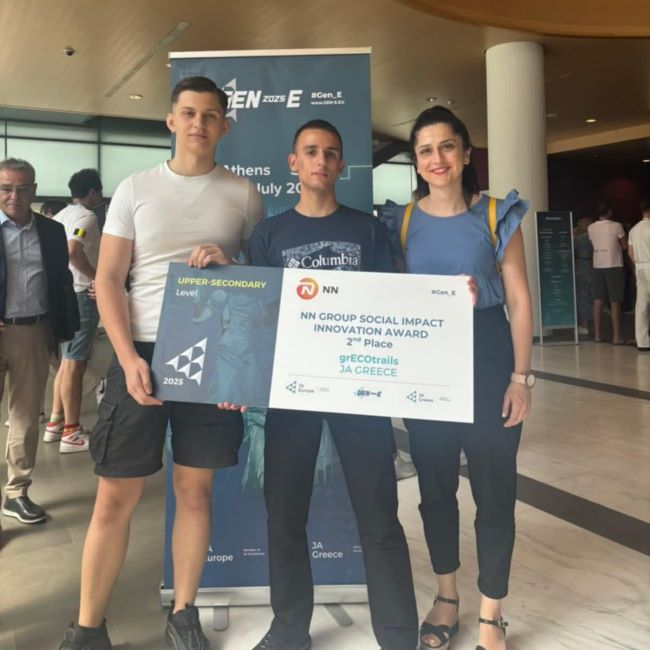 Η grECOtrails κέρδισε την πρώτη θέση στον εθνικό διαγωνισμό του Junior Achievement Greece, με αποτέλεσμα οι μαθητές να λάβουν: