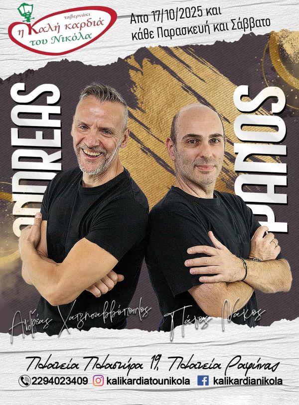 Όπως και πέρσι, στο μικρόφωνο οι μοναδικοί Andreas Hatzisavopoulos & Πάνος Νάκος – γιατί το γλέντι θέλει φωνές που το απογειώνουν!