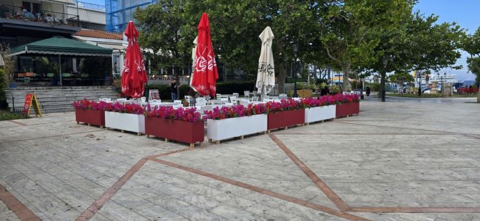Ο λόγος για το ψητοπωλείο “Μπαρμπαβάγγος” και το μαγειρείο – μεζεδοπωλείο “Λιμένι”, που πήραν την πρωτοβουλία να οριοθετήσουν τους εξωτερικούς τους χώρους με πανέμορφες ζαρντινιέρες, προσθέτοντας χρώμα, πράσινο και κομψότητα στην πλατεία.