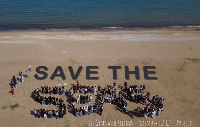 Οι μαθητές του 1ου Γυμνασίου Ραφήνας, μαζί με συνομηλίκους τους από τη Γαλλία, την Ιταλία, την Ισπανία, την Κροατία, τη Ρουμανία και την Τουρκία, συμμετείχαν σε μια συμβολική δράση αφιερωμένη στην προστασία του θαλάσσιου περιβάλλοντος. Στην ακτή σχημάτισαν όλοι μαζί ένα ηχηρό σύνθημα στην άμμο: «Save the Seas – Protect our Future».