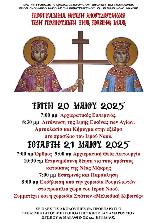 ΜΑΡΑΘΩΝΑΣ - ΝΕΑ ΜΑΚΡΗ Λιγότερο από 1 λεπταΑνάγνωση Η Νέα Μάκρη γιορτάζει τους Πολιούχους της Αγίους Κωνσταντίνο και Ελένη (πρόγραμμα) – rpn 20 Μαΐου, 2025 FacebookTwitterPinterestWhatsApp Η Νέα Μάκρη γιορτάζει τους Πολιούχους της Αγίους Κωνσταντίνο και Ελένη προεξάρχοντος του Μητροπολίτη κ.κ. Κύριλλου TagsΑΓΙΟΣ ΚΩΝΣΤΑΝΤΙΝΟΣ ΚΑΙ ΕΛΕΝΗ Αυτή την εβδομάδα Παραπολιτικά Το παραμύθι του Μπουμπουνόβι και των χωριών με αυτιά 20 Δεκεμβρίου, 2025 0 Μια φορά κι έναν καιρό, σε μια γωνιά του... ΡΑΦΗΝΑ - ΠΙΚΕΡΜΙ Έμυ Κροκίδη: Τι λέει η ψυχολογία για τους τοξικούς ανθρώπους του Δημοτικού Συμβουλίου Ραφήνας Πικερμίου – rpn 20 Δεκεμβρίου, 2025 0 Την δουλειά των ψυχολόγων θα πάρει όπως φαίνεται η... ΜΑΡΑΘΩΝΑΣ - ΝΕΑ ΜΑΚΡΗ Μάτι: Μουσικό ρεβεγιόν στο Άρτιον την Τετάρτη 24/12, Παραμονή Χριστουγέννων 20 Δεκεμβρίου, 2025 0 Τήν Τετάρτη 24/12, Παραμονή Χριστουγέννων ένα μουσικό ρεβεγιόν στο... ΖΩΔΙΑ Τα ζώδια σήμερα Σάββατο 20/12 – rpn 20 Δεκεμβρίου, 2025 0 Αναλυτικά οι προβλέψεις της ημέρας για όλα τα ζώδια ... ΜΑΡΑΘΩΝΑΣ - ΝΕΑ ΜΑΚΡΗ Πρόσκληση και Χριστουγεννιάτικες ευχές από τον Βασίλη Οικονόμου – rpn 20 Δεκεμβρίου, 2025 0 Ο Βουλευτής Ανατολικής Αττικής και π.Υφυπουργός Μεταφορών Βασίλης Οικονόμου... ΝΕΑ Παραπολιτικά Το παραμύθι του Μπουμπουνόβι και των χωριών με αυτιά 0 Μια φορά κι έναν καιρό, σε μια γωνιά του... ΡΑΦΗΝΑ - ΠΙΚΕΡΜΙ Έμυ Κροκίδη: Τι λέει η ψυχολογία για τους τοξικούς ανθρώπους του Δημοτικού Συμβουλίου Ραφήνας Πικερμίου – rpn 0 Την δουλειά των ψυχολόγων θα πάρει όπως φαίνεται η... ΜΑΡΑΘΩΝΑΣ - ΝΕΑ ΜΑΚΡΗ Μάτι: Μουσικό ρεβεγιόν στο Άρτιον την Τετάρτη 24/12, Παραμονή Χριστουγέννων 0 Τήν Τετάρτη 24/12, Παραμονή Χριστουγέννων ένα μουσικό ρεβεγιόν στο... ΖΩΔΙΑ Τα ζώδια σήμερα Σάββατο 20/12 – rpn 0 Αναλυτικά οι προβλέψεις της ημέρας για όλα τα ζώδια ... ΜΑΡΑΘΩΝΑΣ - ΝΕΑ ΜΑΚΡΗ Πρόσκληση και Χριστουγεννιάτικες ευχές από τον Βασίλη Οικονόμου – rpn 0 Ο Βουλευτής Ανατολικής Αττικής και π.Υφυπουργός Μεταφορών Βασίλης Οικονόμου... ΕΙΔΗΣΕΙΣ Αγρότες: «Όλη η Ελλάδα είναι έξω, εγώ δεν θα συνεχίσω;» 0 Αποφασισμένος να συνεχίσει τον αγώνα του για το επόμενο... ΕΙΔΗΣΕΙΣ Αερομαχίες στο Αιγαίο: Εμπλοκή οπλισμένων τουρκικών F-16 με ελληνικά μαχητικά 0 Η Άγκυρα ανεβάζει τους τόνους στο Αιγαίο, πραγματοποιώντας σήμερα... ΕΙΔΗΣΕΙΣ Στα 100 χλμ από την Κρήτη έφτασε το ρωσικό δεξαμενόπλοιο που χτυπήθηκε 0 Τα δεδομένα θέσης που μεταδίδονται σε live χρόνο από... RPN.GR Μάτι: Μουσικό ρεβεγιόν στο Άρτιον την Τετάρτη 24/12, Παραμονή Χριστουγέννων ΜΑΡΑΘΩΝΑΣ - ΝΕΑ ΜΑΚΡΗ 20 Δεκεμβρίου, 2025 Πρόσκληση και Χριστουγεννιάτικες ευχές από τον Βασίλη Οικονόμου – rpn ΜΑΡΑΘΩΝΑΣ - ΝΕΑ ΜΑΚΡΗ 20 Δεκεμβρίου, 2025 Χριστουγεννιάτικη ευκαιρία από τη «Φάμπρικα» διπλό κρεβάτι με ανατομικό στρώμα ΜΑΡΑΘΩΝΑΣ - ΝΕΑ ΜΑΚΡΗ 19 Δεκεμβρίου, 2025 Μαραθώνας: Έκτακτη διακοπή υδροδότησης σε Λ. Σουλίου και οικισμό Δικαστικών Υπαλλήλων λόγω βλάβης σε αγωγό -αναμενόμενη αποκατάσταση τις μεσημεριανές ώρες – rpn ΜΑΡΑΘΩΝΑΣ - ΝΕΑ ΜΑΚΡΗ 18 Δεκεμβρίου, 2025 Μάτι Ραφήνα: Aπαλλαγή του ΕΝΦΙΑ σε ακίνητα πυρόπληκτων – rpn ΜΑΡΑΘΩΝΑΣ - ΝΕΑ ΜΑΚΡΗ 18 Δεκεμβρίου, 2025 ΕΙΔΗΣΕΙΣΡΑΦΗΝΑ - ΠΙΚΕΡΜΙΑΘΛΗΤΙΚΑΜΑΡΑΘΩΝΑΣ - ΝΕΑ ΜΑΚΡΗΕΚΔΗΛΩΣΕΙΣΔΙΑΦΟΡΑΤΟΠΙΚΗ ΚΟΙΝΩΝΙΑ Προηγούμενο άρθροΗ «Οδύσσεια» του Κρίστοφερ Νόλαν γυρίστηκε εξ ολοκλήρου με IMAX κάμερα – RPNΕπόμενο άρθροΑποκλειστικό RPN: Από σήμερα το Κολυμβητήριο Ραφήνας θα κλείνει όταν υπάρχει κίνδυνος πυρκαγιάς κατηγορίας 5