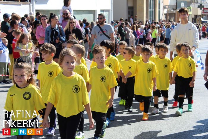 Τα τμήματα υποδομών του συλλόγου έδωσαν δυναμικό «παρών» στην καθιερωμένη μαθητική και συλλογική παρέλαση στους δρόμους της Ραφήνας, αποσπώντας το θερμό χειροκρότημα των παρευρισκομένων. Νωρίτερα, πραγματοποιήθηκε κατάθεση στεφάνου στο ηρώο της πόλης, ως ένδειξη τιμής σε όσους αγωνίστηκαν για την ελευθερία της πατρίδας.