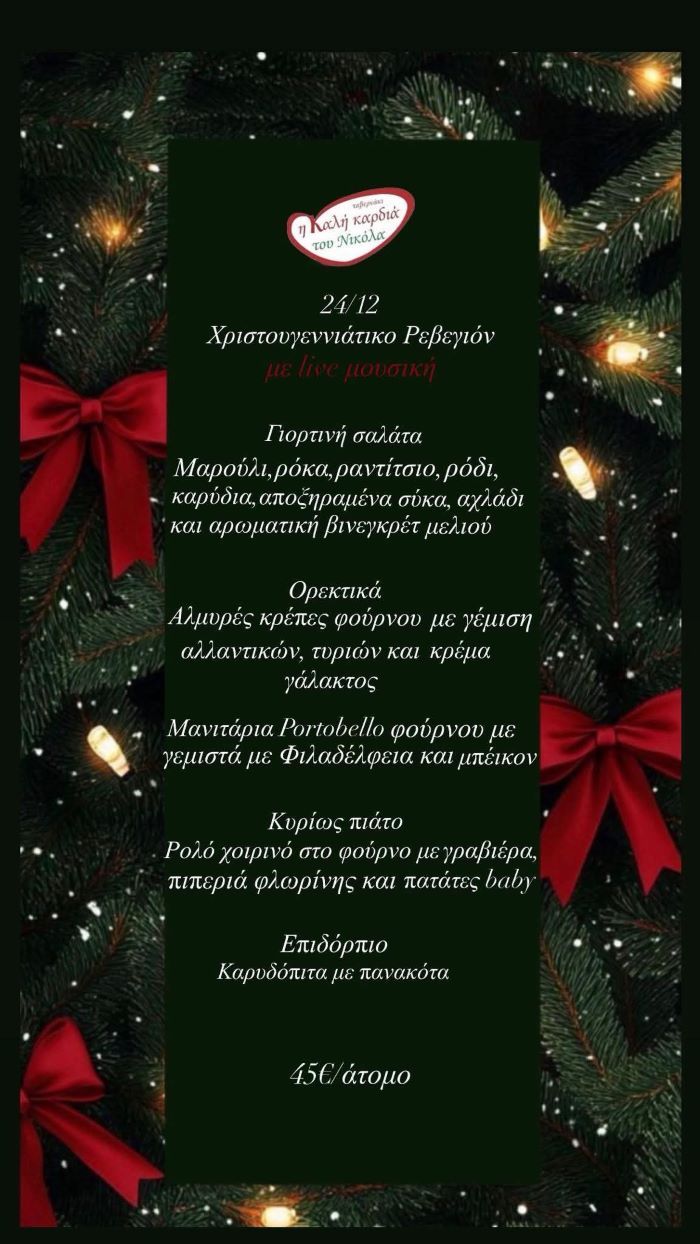 Στην κεντρική πλατεία Ραφήνας, εκεί που η πόλη χτυπάει στον ίδιο ρυθμό χρόνια τώρα, το εστιατόριο «Καλή καρδιά του Νικόλα» στρώνει το πιο ζεστό, γιορτινό τραπέζι των ημερών και σας προσκαλεί σε Χριστουγεννιάτικο και Πρωτοχρονιάτικο ρεβεγιόν όπως τα θυμόμαστε και όπως τα θέλουμε.