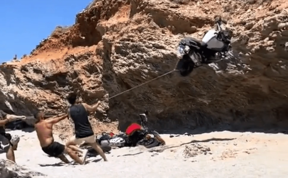 Στο βίντεο, που ήδη κάνει τον γύρο των social media, φαίνονται οι προσπάθειες κατοίκων και παραθεριστών που επιστρατεύτηκαν για να βοηθήσουν στην ανάσυρση των μοτοσικλετών από την παραλία, με τη βοήθεια γερανού. Οι ζημιές στα δίκυκλα φαίνονται σημαντικές, αλλά προς το παρόν ανυπολόγιστες.