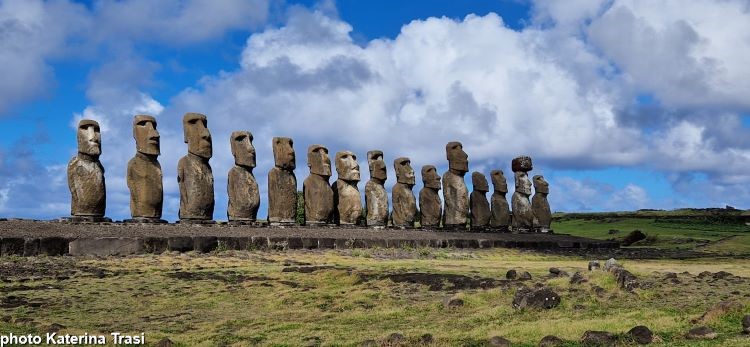 Μετά από μία μακρά πτήση πάνω από τον Ειρηνικό, προσγειωθήκαμε στο Ράπα Νούι, το μυστηριώδες Νησί του Πάσχα. Γιγάντια Μοάι με άγνωστη προέλευση, στραμμένα προς την ενδοχώρα, με τα μάτια τους να μοιάζουν να παρακολουθούν κάθε σου βήμα. Επισκεφθήκαμε την παραλία Ανακένα, με την εξωτική λευκή άμμο και τους κοκοφοίνικες, το Άχου Τε Πίτο Κούρα, που φιλοξενεί τον μεγαλύτερο Μοάι του νησιού, και ανεβήκαμε στο ηφαίστειο Ράνο Ραράκου, στο αρχαίο λατομείο όπου γεννήθηκαν τα αγάλματα.
