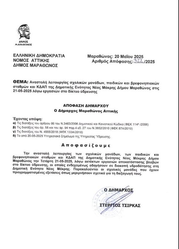 ΜΑΡΑΘΩΝΑΣ - ΝΕΑ ΜΑΚΡΗ Λιγότερο από 1 λεπταΑνάγνωση Κλειστά αύριο Τετάρτη 21/5 όλα τα σχολεία στη Νέα Μάκρη – rpn 20 Μαΐου, 2025 FacebookTwitterPinterestWhatsApp Κλειστές θα παραμείνουν αύριο όλες οι σχολικές μονάδες, οι παιδικοί οι βρεφονηπιακοί σταθμοί και τα ΚΔΑΠ στη Νέα Μάκρη λόγω εργασιών στο δίκτυο ύδρευσης! TagsΚΛΕΙΣΤΑ ΣΧΟΛΕΙΑ ΝΕΑ ΜΑΚΡΗ Αυτή την εβδομάδα ΕΙΔΗΣΕΙΣ ΔΙΕΘΝΗΣ ΕΙΔΗΣΕΙΣ 21/12/2025 20 Δεκεμβρίου, 2025 0 https://youtu.be/S7AFs_PQBaY Παραπολιτικά Η σιωπή ενός ανθρώπου που ξέρει 20 Δεκεμβρίου, 2025 0 Ο άνθρωπος που κάποτε διάβαζε τα gallop πριν ακόμα... ΕΚΔΗΛΩΣΕΙΣ Λευκή Νύχτα Ραφήνας: όταν η πόλη έγινε γιορτή – φωτογραφίες – πολλά βίντεο RPN 20 Δεκεμβρίου, 2025 0 Η Ραφήνα έζησε το βράδυ της Παρασκευής μια από... ΡΑΦΗΝΑ - ΠΙΚΕΡΜΙ Παραμονή Χριστουγέννων στη Ραφήνα: Ζωντανή μουσική και γιορτινό μενού στο Άσπρο Γίδι 20 Δεκεμβρίου, 2025 0 Παραμονή Χριστουγέννων και η Ραφήνα δεν… κοιμάται. Στην καρδιά... Παραπολιτικά Το παραμύθι του Μπουμπουνόβι και των χωριών με αυτιά 20 Δεκεμβρίου, 2025 0 Μια φορά κι έναν καιρό, σε μια γωνιά του... ΝΕΑ ΕΙΔΗΣΕΙΣ ΔΙΕΘΝΗΣ ΕΙΔΗΣΕΙΣ 21/12/2025 0 https://youtu.be/S7AFs_PQBaY Παραπολιτικά Η σιωπή ενός ανθρώπου που ξέρει 0 Ο άνθρωπος που κάποτε διάβαζε τα gallop πριν ακόμα... ΕΚΔΗΛΩΣΕΙΣ Λευκή Νύχτα Ραφήνας: όταν η πόλη έγινε γιορτή – φωτογραφίες – πολλά βίντεο RPN 0 Η Ραφήνα έζησε το βράδυ της Παρασκευής μια από... ΡΑΦΗΝΑ - ΠΙΚΕΡΜΙ Παραμονή Χριστουγέννων στη Ραφήνα: Ζωντανή μουσική και γιορτινό μενού στο Άσπρο Γίδι 0 Παραμονή Χριστουγέννων και η Ραφήνα δεν… κοιμάται. Στην καρδιά... Παραπολιτικά Το παραμύθι του Μπουμπουνόβι και των χωριών με αυτιά 0 Μια φορά κι έναν καιρό, σε μια γωνιά του... ΡΑΦΗΝΑ - ΠΙΚΕΡΜΙ Έμυ Κροκίδη: Τι λέει η ψυχολογία για τους τοξικούς ανθρώπους του Δημοτικού Συμβουλίου Ραφήνας Πικερμίου – rpn 0 Την δουλειά των ψυχολόγων θα πάρει όπως φαίνεται η... ΜΑΡΑΘΩΝΑΣ - ΝΕΑ ΜΑΚΡΗ Μάτι: Μουσικό ρεβεγιόν στο Άρτιον την Τετάρτη 24/12, Παραμονή Χριστουγέννων 0 Τήν Τετάρτη 24/12, Παραμονή Χριστουγέννων ένα μουσικό ρεβεγιόν στο... ΖΩΔΙΑ Τα ζώδια σήμερα Σάββατο 20/12 – rpn 0 Αναλυτικά οι προβλέψεις της ημέρας για όλα τα ζώδια ... RPN.GR Μάτι: Μουσικό ρεβεγιόν στο Άρτιον την Τετάρτη 24/12, Παραμονή Χριστουγέννων ΜΑΡΑΘΩΝΑΣ - ΝΕΑ ΜΑΚΡΗ 20 Δεκεμβρίου, 2025 Πρόσκληση και Χριστουγεννιάτικες ευχές από τον Βασίλη Οικονόμου – rpn ΜΑΡΑΘΩΝΑΣ - ΝΕΑ ΜΑΚΡΗ 20 Δεκεμβρίου, 2025 Χριστουγεννιάτικη ευκαιρία από τη «Φάμπρικα» διπλό κρεβάτι με ανατομικό στρώμα ΜΑΡΑΘΩΝΑΣ - ΝΕΑ ΜΑΚΡΗ 19 Δεκεμβρίου, 2025 Μαραθώνας: Έκτακτη διακοπή υδροδότησης σε Λ. Σουλίου και οικισμό Δικαστικών Υπαλλήλων λόγω βλάβης σε αγωγό -αναμενόμενη αποκατάσταση τις μεσημεριανές ώρες – rpn ΜΑΡΑΘΩΝΑΣ - ΝΕΑ ΜΑΚΡΗ 18 Δεκεμβρίου, 2025 Μάτι Ραφήνα: Aπαλλαγή του ΕΝΦΙΑ σε ακίνητα πυρόπληκτων – rpn ΜΑΡΑΘΩΝΑΣ - ΝΕΑ ΜΑΚΡΗ 18 Δεκεμβρίου, 2025 ΕΙΔΗΣΕΙΣΡΑΦΗΝΑ - ΠΙΚΕΡΜΙΑΘΛΗΤΙΚΑΜΑΡΑΘΩΝΑΣ - ΝΕΑ ΜΑΚΡΗΕΚΔΗΛΩΣΕΙΣΔΙΑΦΟΡΑΤΟΠΙΚΗ ΚΟΙΝΩΝΙΑ Προηγούμενο άρθροΑνάκληση Παρτίδας Τσουρεκιού με Πραλίνα Φουντουκιού από τον ΕΦΕΤ – rpnΕπόμενο άρθροΡαφήνα: Οι Μεγάλες Συναυλίες του καλοκαιριού – Αλκίνοος Ιωαννίδης, Απών και Ιουλία Καραπατάκη στο Κολυμβητήριο -rpn