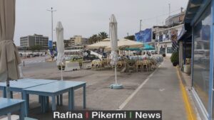 Ηρεμία σήμερα στο λιμάνι της Ραφήνας. Ευκαιρία για μια χαλαρή βόλτα για αρκετούς που εκμεταλλεύονται τις ώρες αυτές μέχρι να ετοιμαστεί ο Πασχαλινός οβελίας και τα συμπαρομαρτούντα αυτού, κοκορέτσι, τζατζίκι και όλα τα υπόλοιπα.
