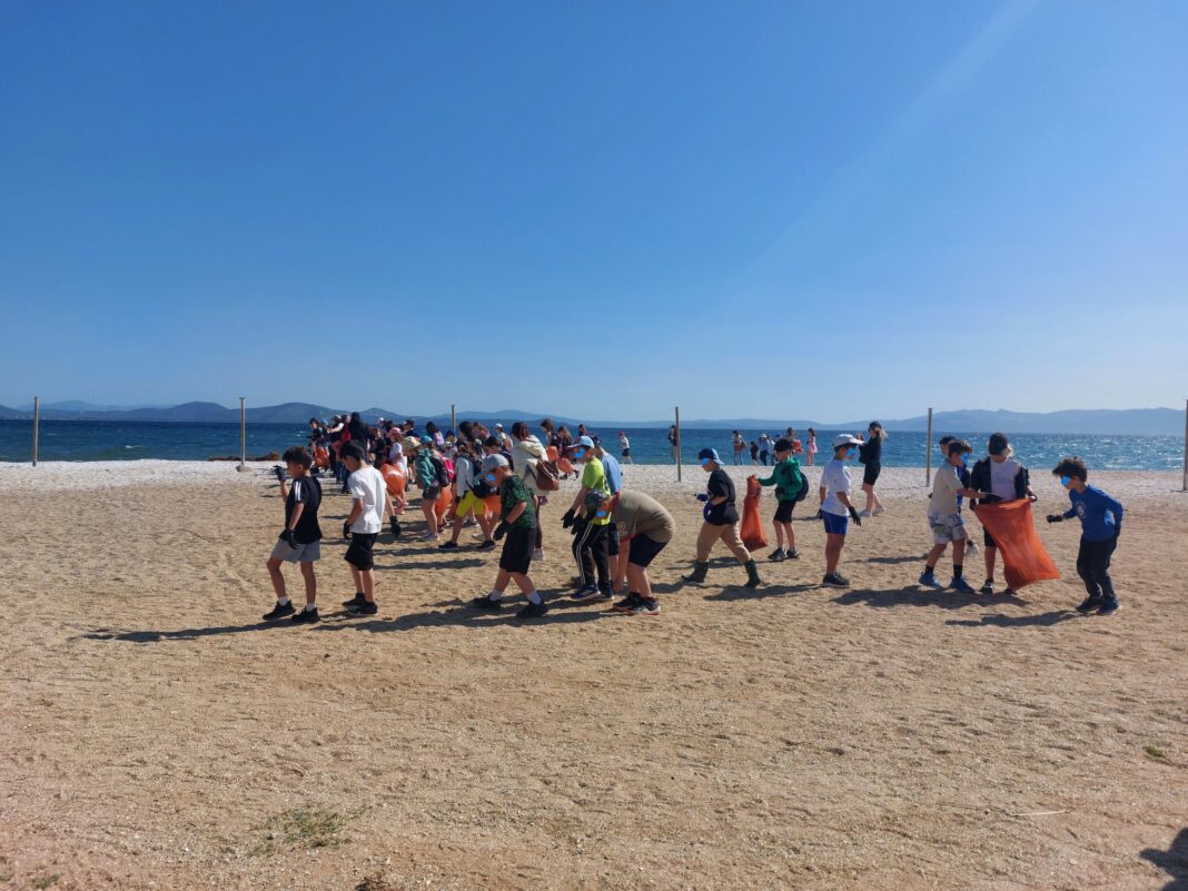 Οι μαθητές μαζί με τον διευθυντή του σχολείου και τους εκπαιδευτικούς τους, δημιουργώντας μια κάθετη γραμμή στην ακτή, πραγματικά «σάρωσαν» την παραλία Ζούμπερι.