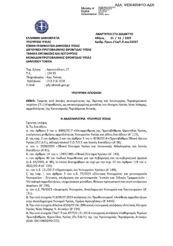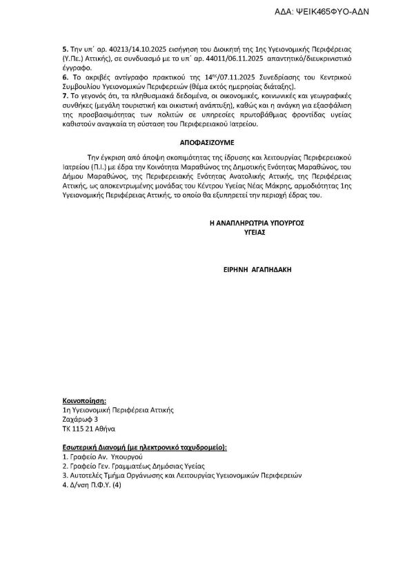 «Μαζί συνεχίζουμε να χτίζουμε έναν Μαραθώνα που φροντίζει τους ανθρώπους του. Η δημιουργία του Περιφερειακού Ιατρείου είναι μια επένδυση στην ποιότητα ζωής και στην ασφάλεια των συμπολιτών μας».