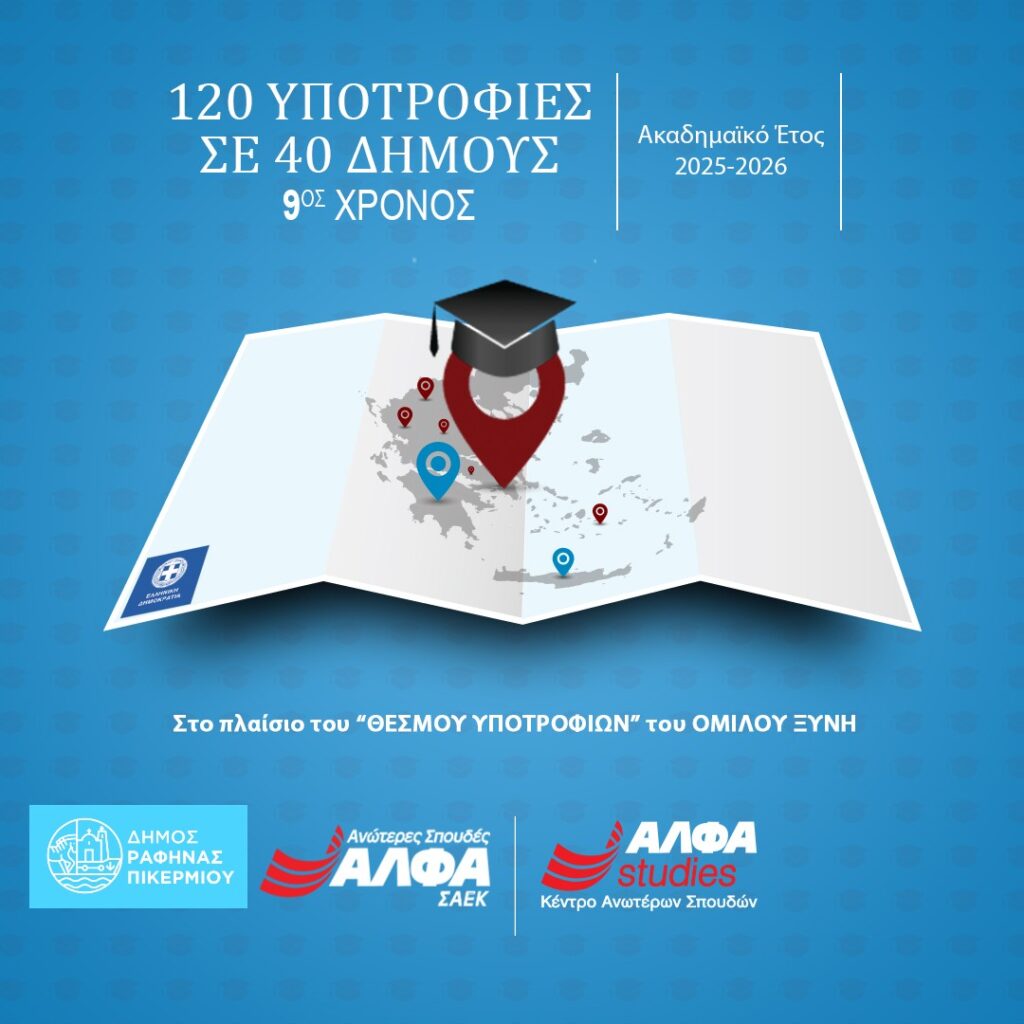 Ο Δήμος Ραφήνας – Πικερμίου ανακοινώνει την προκήρυξη μίας (1) υποτροφίας σπουδών για Executive Diploma σε έναν εργαζόμενο του Δήμου,  η οποία χορηγείται από το ΣΑΕΚ ΑΛΦΑ & ΑΛΦΑ studies σε εργαζόμενους που θέλουν να εξειδικευτούν και να εδραιώσουν τη θέση εργασίας τους σε πρόγραμμα εξειδίκευσης Advanced Professional Studies (APS).