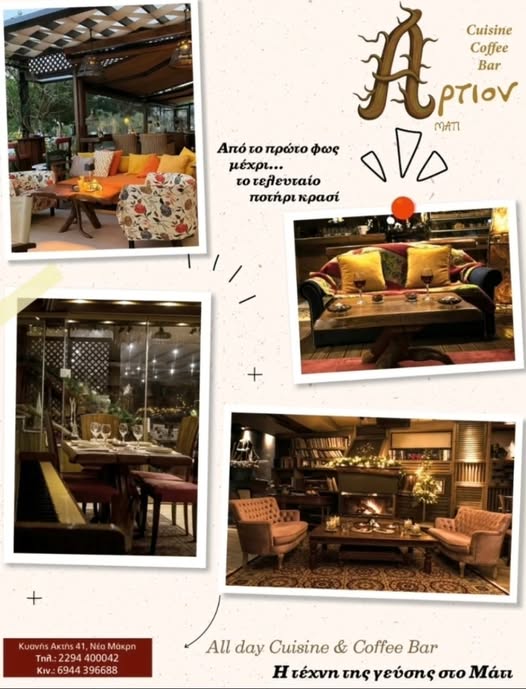 Στο πιο καλαίσθητο στέκι της περιοχής, το ΑΡΤΙΟΝ στο Μάτι, επιβάλλεται μία καθημερινή στάση και απόδραση από το άγχος της ημέρας!