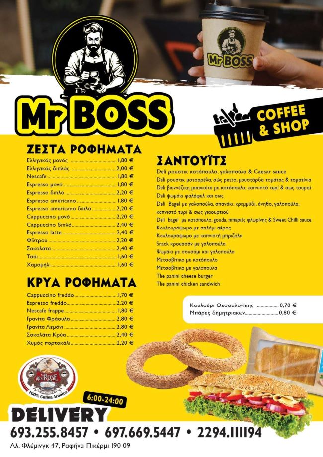 Στην καρδιά της Ραφήνας, στη Λεωφόρο Φλέμινγκ 47, άνοιξε τις πόρτες του το πιο σύγχρονο καφέ – μίνι μάρκετ της περιοχής: MR BOSS! Ένας πολυχώρος που συνδυάζει το γρήγορο καφέ με την άνεση ενός πλήρως εξοπλισμένου μίνι μάρκετ — και μάλιστα με ώρες λειτουργίας από τις 6 το πρωί έως τις 12 το βράδυ!