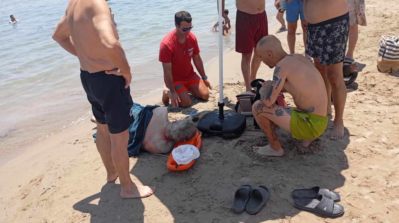 Οι ναυαγοσώστες του Action club Hellas, που επιτηρούν την περιοχή, επενέβησαν άμεσα όταν αντιλήφθηκαν λουόμενο να βρίσκεται σε κίνδυνο εντός της θάλασσας.