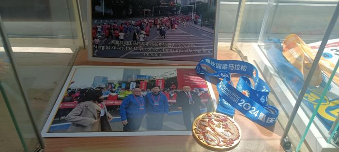 Σημαντικό εμπλουτισμό γνώρισε η ενότητα του Μουσείου Μαραθωνίου Δρόμου που είναι αφιερωμένη στους Διεθνείς Μαραθωνίους, χάρη στα νέα εκθέματα που προέκυψαν από την πρόσφατη επίσημη επίσκεψη του Δημάρχου Μαραθώνος, κ. Στέργιου Τσίρκα, στην Κίνα.