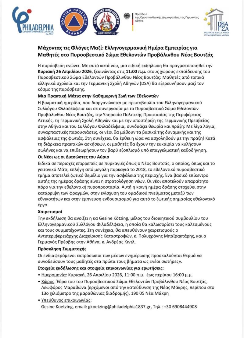 ΠΥΣΕΘ ΜΑΡΑΘΩΝΑΣ - ΝΕΑ ΜΑΚΡΗΡΑΦΗΝΑ - ΠΙΚΕΡΜΙΤΟΠΙΚΑ ΝΕΑ Λιγότερο από 1 λεπταΑνάγνωση Νέος Βουτζάς: Εκδήλωση για μαθητές σήμερα Κυριακή στους χώρους του Πυροσβεστικού Σώματος Προβαλίνθου 26 Απριλίου, 2026 FacebookTwitterPinterestWhatsApp Αυτή την εβδομάδα ΡΑΦΗΝΑ - ΠΙΚΕΡΜΙ Ραφήνα: Υποβρύχιος καθαρισμός από την Aegean Rebreath στο αλιευτικό καταφύγιο του λιμένα 26 Απριλίου, 2026 0 Υποβρύχιος καθαρισμός και δράσεις ευαισθητοποίησης για την προστασία του... ΚΑΙΡΟΣ Καιρός: Ανοιξιάτικο σκηνικό – Πού θα πέσει αισθητά η θερμοκρασία την Πρωτομαγιά 26 Απριλίου, 2026 0 Με υψηλές θερμοκρασίες, λιακάδα και άκρως ανοιξιάτικο σκηνικό ξεκινά... ΕΙΔΗΣΕΙΣ Τα μέτρα για τον υποχρεωτικό καθαρισμό οικοπέδων- τι πρόστιμα θα επιβάλλονται 26 Απριλίου, 2026 0 Τις κύριες αλλαγές που εισάγονται για τις υποχρεώσεις καθαρισμού... ΕΙΔΗΣΕΙΣ ΗΠΑ: Ακινητοποιήθηκε ο δράστης ένοπλης επίθεσης στο δείπνο ανταποκριτών – Οπλισμένος με κυνηγετικό όπλο 26 Απριλίου, 2026 0 Ποιος είναι ο δράστης Ο ύποπτος είναι 31 ετών και... ΖΩΔΙΑ Τα ζώδια σήμερα Κυριακή 26/4 26 Απριλίου, 2026 0 Αναλυτικά τα ζώδια σήμερα 26/4 Κριός: Αγαπητέ μου Κριέ,... ΝΕΑ ΡΑΦΗΝΑ - ΠΙΚΕΡΜΙ Ραφήνα: Υποβρύχιος καθαρισμός από την Aegean Rebreath στο αλιευτικό καταφύγιο του λιμένα 0 Υποβρύχιος καθαρισμός και δράσεις ευαισθητοποίησης για την προστασία του... ΚΑΙΡΟΣ Καιρός: Ανοιξιάτικο σκηνικό – Πού θα πέσει αισθητά η θερμοκρασία την Πρωτομαγιά 0 Με υψηλές θερμοκρασίες, λιακάδα και άκρως ανοιξιάτικο σκηνικό ξεκινά... ΕΙΔΗΣΕΙΣ Τα μέτρα για τον υποχρεωτικό καθαρισμό οικοπέδων- τι πρόστιμα θα επιβάλλονται 0 Τις κύριες αλλαγές που εισάγονται για τις υποχρεώσεις καθαρισμού... ΕΙΔΗΣΕΙΣ ΗΠΑ: Ακινητοποιήθηκε ο δράστης ένοπλης επίθεσης στο δείπνο ανταποκριτών – Οπλισμένος με κυνηγετικό όπλο 0 Ποιος είναι ο δράστης Ο ύποπτος είναι 31 ετών και... ΖΩΔΙΑ Τα ζώδια σήμερα Κυριακή 26/4 0 Αναλυτικά τα ζώδια σήμερα 26/4 Κριός: Αγαπητέ μου Κριέ,... ΕΙΔΗΣΕΙΣ Νέος σεισμός 4,8 Ρίχτερ στην Κρήτη – Συνεχίζεται η σεισμική δραστηριότητα στο Λασίθι 0 Αναστάτωση προκάλεσε το βράδυ του Σαββάτου (25/4) νέα σεισμική... ΠΕΡΙΦΕΡΕΙΑ ΑΤΤΙΚΗΣ Η Πολιτική Προστασία Ανατολικής Αττικής (Συντονιστικό Όργανο) συνεδρίασε υπό την Προεδρία του Δημήτρη Δαμάσκου 0 Χθές 24/04/2026, πραγματοποιήθηκε η συνεδρίαση του Περιφερειακού Επιχειρησιακού Συντονιστικού... Παραπολιτικά Δημοτικό Συμβούλιο Ραφήνας Πικερμίου: Νέα θεσμική εκτροπή και… ο πάτος που δεν φαίνεται ακόμα! 0 Η πρόσφατη συνεδρίαση του Δημοτικού Συμβουλίου Ραφήνας–Πικερμίου, με βασικά... RPN.GR Ραφήνα: Υποβρύχιος καθαρισμός από την Aegean Rebreath στο αλιευτικό καταφύγιο του λιμένα ΡΑΦΗΝΑ - ΠΙΚΕΡΜΙ 26 Απριλίου, 2026 Τα μέτρα για τον υποχρεωτικό καθαρισμό οικοπέδων- τι πρόστιμα θα επιβάλλονται ΕΙΔΗΣΕΙΣ 26 Απριλίου, 2026 Η Πολιτική Προστασία Ανατολικής Αττικής (Συντονιστικό Όργανο) συνεδρίασε υπό την Προεδρία του Δημήτρη Δαμάσκου ΠΕΡΙΦΕΡΕΙΑ ΑΤΤΙΚΗΣ 25 Απριλίου, 2026 Δημοτικό Συμβούλιο Ραφήνας Πικερμίου: Νέα θεσμική εκτροπή και… ο πάτος που δεν φαίνεται ακόμα! Παραπολιτικά 25 Απριλίου, 2026 Δυναμική παρουσία του 1ου Γυμνασίου Ραφήνας στο Πανελλήνιο Μαθητικό Συνέδριο ΡΑΦΗΝΑ - ΠΙΚΕΡΜΙ 25 Απριλίου, 2026 ΕΙΔΗΣΕΙΣΡΑΦΗΝΑ - ΠΙΚΕΡΜΙΑΘΛΗΤΙΚΑΜΑΡΑΘΩΝΑΣ - ΝΕΑ ΜΑΚΡΗΕΚΔΗΛΩΣΕΙΣΤΟΠΙΚΗ ΚΟΙΝΩΝΙΑΔΙΑΦΟΡΑ Προηγούμενο άρθροΡαφήνα: Υποβρύχιος καθαρισμός από την Aegean Rebreath στο αλιευτικό καταφύγιο του λιμένα