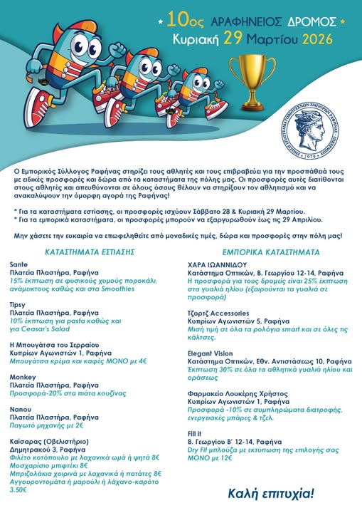 ΡΑΦΗΝΑ - ΠΙΚΕΡΜΙΤΟΠΙΚΑ ΝΕΑΤΟΠΙΚΗ ΚΟΙΝΩΝΙΑ Λιγότερο από 1 λεπταΑνάγνωση Ο Εμπορικός Σύλλογος Ραφήνας στηρίζει τον 10ο Αραφήνειο, με προσφορές και ειδικές τιμές από τα καταστήματα της πόλης 27 Μαρτίου, 2026 FacebookTwitterPinterestWhatsApp Οι αθλητές τρέχουν – οι προσφορές τρέχουν μαζί τους! Στηρίζουμε τον 10ο Αραφήνειο Δρόμο και τους αθλητές με προσφορές και ειδικές τιμές από τα καταστήματα της πόλης μας! Καλή επιτυχία σε όλους! TagsΕΜΠΟΡΙΚΟΣ ΣΥΛΛΟΓΟΣ ΡΑΦΗΝΑΣ Αυτή την εβδομάδα ΡΑΦΗΝΑ - ΠΙΚΕΡΜΙ Πρόσκληση σε συνεδρίαση Δημοτικής Επιτροπής Ραφήνας Πικερμίου 27 Μαρτίου, 2026 0 Η Πρόεδρος της Δημοτικής Επιτροπής του Δήμου Ραφήνας –... ΡΑΦΗΝΑ - ΠΙΚΕΡΜΙ Κοινή ανακοίνωση παρατάξεων αντιπολίτευσης δήμου Μαραθώνος: ”Μαύρη σελίδα για τη Δημοκρατία στον Μαραθώνα” 27 Μαρτίου, 2026 0 ΚΟΙΝΗ ΑΝΑΚΟΙΝΩΣΗ ΠΑΡΑΤΑΞΕΩΝ ΑΝΤΙΠΟΛΙΤΕΥΣΗΣ ΔΗΜΟΥ ΜΑΡΑΘΩΝΟΣ Θέμα: Μαύρη σελίδα για... ΡΑΦΗΝΑ - ΠΙΚΕΡΜΙ Τσεμπέρης: ”Διοικητικό αλαλούμ και η μοναξιά της Δημάρχου…- ”Οι συνεργάτες της στα όρια της πολιτικής δειλίας.” 27 Μαρτίου, 2026 0 Παρών στην χτεσινή συνεδρίαση του Δημοτικού Συμβουλίου της πόλης... ΑΘΛΗΤΙΚΑ Θύελλα Ραφήνας – Κυανούς Αστέρας Βάρης Δυνατή μάχη με φόντο το τρίποντο 27 Μαρτίου, 2026 0 Η ώρα των πράξεων πλησιάζει για τη Θύελλα Ραφήνας.... ΡΑΦΗΝΑ - ΠΙΚΕΡΜΙ Το Δημοτικό Συμβούλιο Ραφήνας Πικερμίου συνεδριάζει στις 2 Απριλίου για 6 θέματα 27 Μαρτίου, 2026 0 Η Πρόεδρος του Δημοτικού Συμβουλίου, σας καλεί σύμφωνα με... ΝΕΑ ΡΑΦΗΝΑ - ΠΙΚΕΡΜΙ Πρόσκληση σε συνεδρίαση Δημοτικής Επιτροπής Ραφήνας Πικερμίου 0 Η Πρόεδρος της Δημοτικής Επιτροπής του Δήμου Ραφήνας –... ΡΑΦΗΝΑ - ΠΙΚΕΡΜΙ Κοινή ανακοίνωση παρατάξεων αντιπολίτευσης δήμου Μαραθώνος: ”Μαύρη σελίδα για τη Δημοκρατία στον Μαραθώνα” 0 ΚΟΙΝΗ ΑΝΑΚΟΙΝΩΣΗ ΠΑΡΑΤΑΞΕΩΝ ΑΝΤΙΠΟΛΙΤΕΥΣΗΣ ΔΗΜΟΥ ΜΑΡΑΘΩΝΟΣ Θέμα: Μαύρη σελίδα για... ΡΑΦΗΝΑ - ΠΙΚΕΡΜΙ Τσεμπέρης: ”Διοικητικό αλαλούμ και η μοναξιά της Δημάρχου…- ”Οι συνεργάτες της στα όρια της πολιτικής δειλίας.” 0 Παρών στην χτεσινή συνεδρίαση του Δημοτικού Συμβουλίου της πόλης... ΑΘΛΗΤΙΚΑ Θύελλα Ραφήνας – Κυανούς Αστέρας Βάρης Δυνατή μάχη με φόντο το τρίποντο 0 Η ώρα των πράξεων πλησιάζει για τη Θύελλα Ραφήνας.... ΡΑΦΗΝΑ - ΠΙΚΕΡΜΙ Το Δημοτικό Συμβούλιο Ραφήνας Πικερμίου συνεδριάζει στις 2 Απριλίου για 6 θέματα 0 Η Πρόεδρος του Δημοτικού Συμβουλίου, σας καλεί σύμφωνα με... ΕΙΔΗΣΕΙΣ Συνάντηση με τον Πρόεδρο της Ελληνικής Δερματολογικής και Αφροδισιολογικής Εταιρείας είχε ο Μακαριώτατος 0 Το μεσημέρι της Πέμπτης 26/03 τον Αρχιεπίσκοπο επισκέφθηκε ο... ΡΑΦΗΝΑ - ΠΙΚΕΡΜΙ 3ο Νηπιαγωγείο Ραφήνας: «Ακούω, Μιλάω, Συνδέομαι: Όταν τα γιατί γίνονται καταλαβαίνω» 0 Υλοποίηση δράσης στο 3ο Νηπιαγωγείο Ραφήνας με θέμα: «Ακούω,... ΜΑΡΑΘΩΝΑΣ - ΝΕΑ ΜΑΚΡΗ Ο δήμος Μαραθώνος αποχαιρετά τον Λάμπρο Βαρδίδη- το τελευταίο αντίο σήμερα στις 13.30 0 Τον αγαπητό μας συνάδελφο και φίλο Λάμπρο Βαρδίδη αποχαιρετούμε... RPN.GR Πρόσκληση σε συνεδρίαση Δημοτικής Επιτροπής Ραφήνας Πικερμίου ΡΑΦΗΝΑ - ΠΙΚΕΡΜΙ 27 Μαρτίου, 2026 Κοινή ανακοίνωση παρατάξεων αντιπολίτευσης δήμου Μαραθώνος: ”Μαύρη σελίδα για τη Δημοκρατία στον Μαραθώνα” ΡΑΦΗΝΑ - ΠΙΚΕΡΜΙ 27 Μαρτίου, 2026 Τσεμπέρης: ”Διοικητικό αλαλούμ και η μοναξιά της Δημάρχου…- ”Οι συνεργάτες της στα όρια της πολιτικής δειλίας.” ΡΑΦΗΝΑ - ΠΙΚΕΡΜΙ 27 Μαρτίου, 2026 Το Δημοτικό Συμβούλιο Ραφήνας Πικερμίου συνεδριάζει στις 2 Απριλίου για 6 θέματα ΡΑΦΗΝΑ - ΠΙΚΕΡΜΙ 27 Μαρτίου, 2026 3ο Νηπιαγωγείο Ραφήνας: «Ακούω, Μιλάω, Συνδέομαι: Όταν 