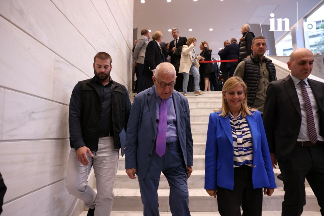 Κυβερνητικά στελέχη αναμένουν την έναρξη, ανάμεσά τους ο Βασίλης Κικίλιας, ο Παύλος Μαρινάκης και η Νίκη Κεραμέως