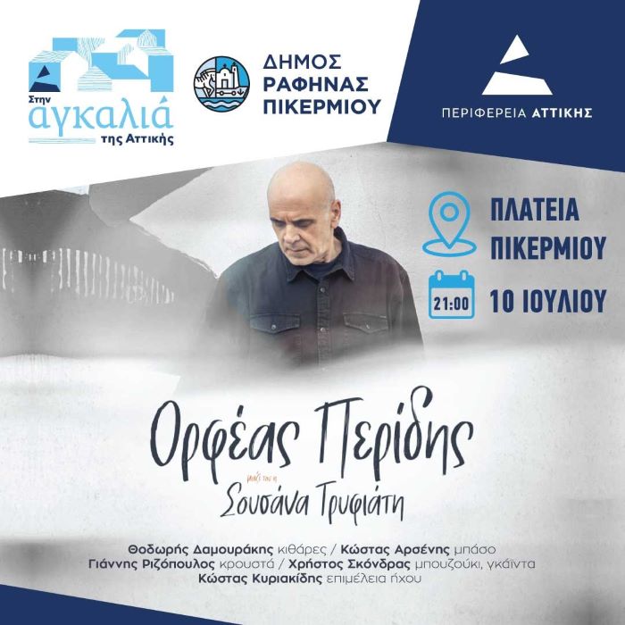 Ορφέας Περίδης & Σουσάνα Τρυφιάτη Live στην Πλατεία Πικερμίου – 10 Ιουλίου, 21:00 με την συνδιοργάνωση του δήμου Ραφήνας Πικερμίου και της Περιφέρειας Αττικής