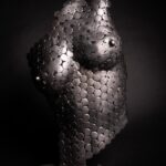 Ανάμεσα στα πιο χαρακτηριστικά έργα του συγκαταλέγεται μια Μέδουσα ωμή και αφοπλιστικά αληθινή. Φτιαγμένη από λαμαρίνες και βιομηχανικά θραύσματα, μοιάζει να κινείται και να αναπνέει, προκαλώντας τον θεατή όχι να την «θαυμάσει», αλλά να τη βιώσει. Δίπλα της, μια προτομή αλόγου αποτυπώνει τη στιγμή πριν από την έκρηξη της κίνησης: δύναμη σε αναμονή, σμιλεμένη με τη μαθηματική πειθαρχία της μηχανικής και την ενστικτώδη ορμή της τέχνης.