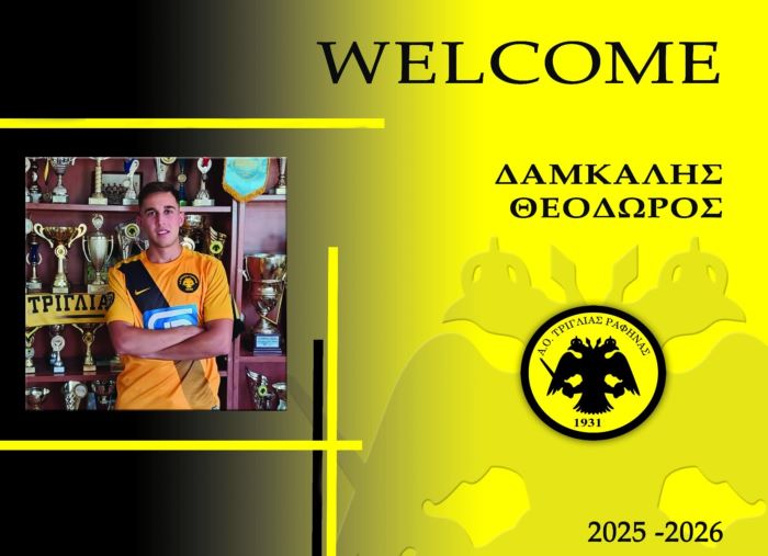 Το Δ.Σ. του Α.Ο. Τριγλίας Ραφήνας ανακοινώνει την επιστροφή του Θεόδωρου Δαμκαλή στον σύλλογο μας.. Ο γεννημένος το 2005 Θοδωρής προέρχεται από τις ακαδημίες της ομάδας μας και την περσινή αγωνιστική περίοδο δόθηκε δανεικός στον Α.Ο. Άρτεμις, όπου είχε μία γεμάτη αγωνιστική χρονιά. Καλώς ήρθες Θοδωρή ξανά κοντά μας και σου ευχόμαστε μία καλή και επιτυχημένη αγωνιστική σεζόν.