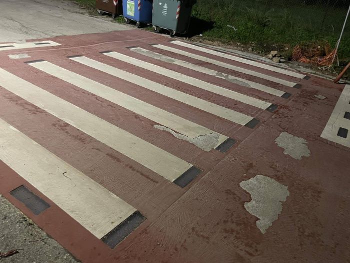 Οι διαβάσεις που υποτίθεται ότι θα ήταν εξοπλισμένες με αυτόματη σήμανση – τις γνωστές led panels που προειδοποιούν οδηγούς μέρα–νύχτα – εμφανίζονται χωρίς το κρίσιμο αυτό στοιχείο.Και αν κάποιος περίμενε τουλάχιστον στιβαρότητα, η πρώτη βροχή φρόντισε να αποδείξει ότι ούτε αυτό υπάρχει: τα υλικά ξεφλουδίζουν, το χρώμα αλλοιώνεται και η όλη κατασκευή μοιάζει ήδη κουρασμένη, σαν να άντεξε όχι μία μπόρα, αλλά δεκαετία.