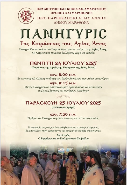 ΕΚΔΗΛΩΣΕΙΣΜΑΡΑΘΩΝΑΣ - ΝΕΑ ΜΑΚΡΗ Λιγότερο από 1 λεπταΑνάγνωση Πανήγυρις στο Ιερό Παρεκκλήσιο Αγίας Άννης Μαραθώνα- Μέγας Εσπερινός μετ’ αρτοκλασίας – rpn 16 Ιουλίου, 2025 FacebookTwitterPinterestWhatsApp Πανηγυρίζει και φέτος το Ιερό Παρεκκλήσιο επ΄ ονόματι της Αγίας Άννης στο Μαραθώνα, σύμφωνα με το πρόγραμμα που ακολουθεί: TagsΑΓΙΑ ΑΝΝΑ ΜΑΡΑΘΩΝΑ Αυτή την εβδομάδα ΡΑΦΗΝΑ - ΠΙΚΕΡΜΙ Καλά Χριστούγεννα από την ΔΗΜ.ΤΟ Ν.Δ Ραφήνας Πικερμίου – rpn 18 Δεκεμβρίου, 2025 0 ΣΠΑΤΑ - ΑΡΤΕΜΙΔΑ Βράβευση Επιτυχόντων Μαθητών του δήμου Σπάτων Αρτέμιδος – rpn 18 Δεκεμβρίου, 2025 0 Βράβευση Επιτυχόντων Μαθητών – Class of 2025Ο Δήμος Σπάτων... Life Style -Μόδα Νεαρός μήνυσε τον Μαζωνάκη για ανήθικες προτάσεις – rpn 18 Δεκεμβρίου, 2025 0 Μήνυση σε βάρος του Γιώργου Μαζωνάκη κατέθεσε σήμερα, Τετάρτη... Life Style -Μόδα Οργανωμένο σχέδιο εκβίασης σε βάρος του Γιώργου Μαζωνάκη καταγγέλλει ο δικηγόρος του – rpn 18 Δεκεμβρίου, 2025 0 Διαβάστε ολόκληρη την ανακοίνωση Σοβαρές καταγγελίες περί οργανωμένου σχεδίου εκβίασης... ΕΙΔΗΣΕΙΣ Όταν η βία είναι καταδικαστέα, αλλά η υποκρισία περισσεύει 18 Δεκεμβρίου, 2025 0 Υπάρχουν κάποια πράγματα που δεν επιδέχονται καμία απολύτως συζήτηση.... ΝΕΑ ΡΑΦΗΝΑ - ΠΙΚΕΡΜΙ Καλά Χριστούγεννα από την ΔΗΜ.ΤΟ Ν.Δ Ραφήνας Πικερμίου – rpn 0 ΣΠΑΤΑ - ΑΡΤΕΜΙΔΑ Βράβευση Επιτυχόντων Μαθητών του δήμου Σπάτων Αρτέμιδος – rpn 0 Βράβευση Επιτυχόντων Μαθητών – Class of 2025Ο Δήμος Σπάτων... Life Style -Μόδα Νεαρός μήνυσε τον Μαζωνάκη για ανήθικες προτάσεις – rpn 0 Μήνυση σε βάρος του Γιώργου Μαζωνάκη κατέθεσε σήμερα, Τετάρτη... Life Style -Μόδα Οργανωμένο σχέδιο εκβίασης σε βάρος του Γιώργου Μαζωνάκη καταγγέλλει ο δικηγόρος του – rpn 0 Διαβάστε ολόκληρη την ανακοίνωση Σοβαρές καταγγελίες περί οργανωμένου σχεδίου εκβίασης... ΕΙΔΗΣΕΙΣ Όταν η βία είναι καταδικαστέα, αλλά η υποκρισία περισσεύει 0 Υπάρχουν κάποια πράγματα που δεν επιδέχονται καμία απολύτως συζήτηση.... ΜΑΡΑΘΩΝΑΣ - ΝΕΑ ΜΑΚΡΗ Μάτι – Παράνομη πίστα σε αναδασωτέα γη της Νέας Μάκρης – rpn 0 Σοβαρές περιβαλλοντικές και κοινωνικές επιπτώσεις προκαλεί η λειτουργία παράνομης... ΕΙΔΗΣΕΙΣ Συντάξεις Ιανουαρίου: Πληρωμές από σήμερα – Τι ώρα μπαίνουν τα χρήματα στα ΑΤΜ – rpn 0 Από σήμερα, Πέμπτη 18 Δεκεμβρίου, ξεκινά η καταβολή των... ΡΑΦΗΝΑ - ΠΙΚΕΡΜΙ Συνεδρίαση Λογοδοσίας της Δημοτικής Αρχής Ραφήνας Πικερμίου στις 30 Δεκεμβρίου – rpn 0 Καλείσθε όπως προσέλθετε στην 6η Ειδική, μεικτή (διά ζώσης και... RPN.GR Μάτι – Παράνομη πίστα σε αναδασωτέα γη της Νέας Μάκρης – rpn ΜΑΡΑΘΩΝΑΣ - ΝΕΑ ΜΑΚΡΗ 18 Δεκεμβρίου, 2025 Χριστουγεννιάτικο Φιλανθρωπικό Τσάι από τον Ιερό Ναό Αγίας Φιλοθέης Διώνης στην Ανάληψη Ραφήνας – rpn ΕΚΔΗΛΩΣΕΙΣ 17 Δεκεμβρίου, 2025 Ραφήνα: Λευκή Νύχτα μαζί με Vapeon και Project Insurance και τα έσοδα στον μαθητή που δίνει μάχη – rpn ΕΚΔΗΛΩΣΕΙΣ 17 Δεκεμβρίου, 2025 Νέα Μάκρη: SANTA RUN στην κεντρική πλατεία από τον Εμπορικό Σύλλογο και τον Δήμο Μαραθώνος – rpn ΜΑΡΑΘΩΝΑΣ - ΝΕΑ ΜΑΚΡΗ 17 Δεκεμβρίου, 2025 Ραφήνα: Χριστουγεννιάτικη γιορτή από τον Φιλαρμονικό Πολιτιστικό Σύλλογο – rpn ΕΚΔΗΛΩΣΕΙΣ 17 Δεκεμβρίου, 2025 ΕΙΔΗΣΕΙΣΡΑΦΗΝΑ - ΠΙΚΕΡΜΙΑΘΛΗΤΙΚΑΜΑΡΑΘΩΝΑΣ - ΝΕΑ ΜΑΚΡΗΕΚΔΗΛΩΣΕΙΣΔΙΑΦΟΡΑΤΟΠΙΚΗ ΚΟΙΝΩΝΙΑ Προηγούμενο άρθροΣχοινιάς: Στο «Καράβι» οι αγώνες Beach Volley ανδρών και γυναικών των Ενόπλων Δυνάμεων και των Σωμάτων Ασφαλείας – rpnΕπόμενο άρθροΚατά παραγγελία από την πρώην σύζυγο η δολοφονία του Πολωνού καθηγητή στην Αγία Παρασκευή – Τον σκότωσε ο νυν σύντροφός της – rpn