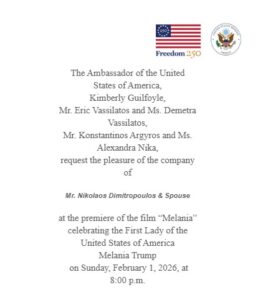 Την Κυριακή 1/2 η AHEPA HELLAS συμμετείχε σε εκδήλωση που πραγματοποιήθηκε υπό την αιγίδα της Αμερικανικής Πρεσβείας, με αφορμή την πρεμιέρα της ταινίας «Melania».