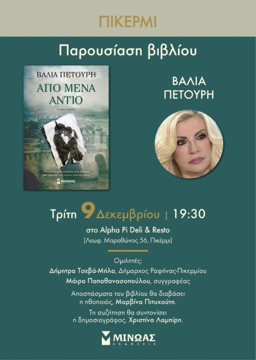 Παρουσίαση του βιβλίου της Βάλιας Πετούση «Από μένα αντίο», στο Πικέρμι – rpn
